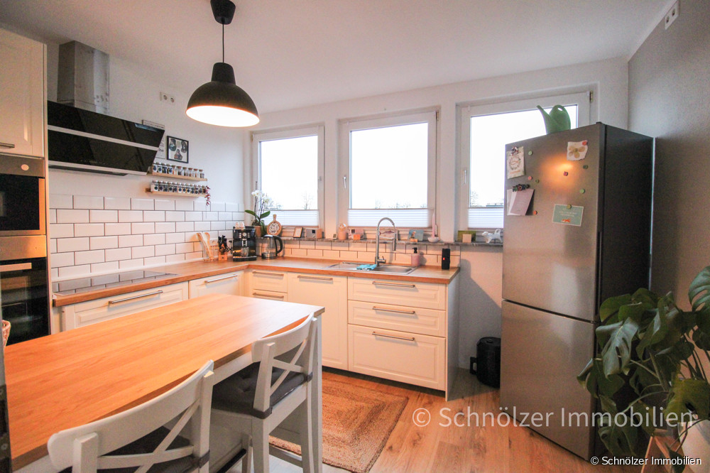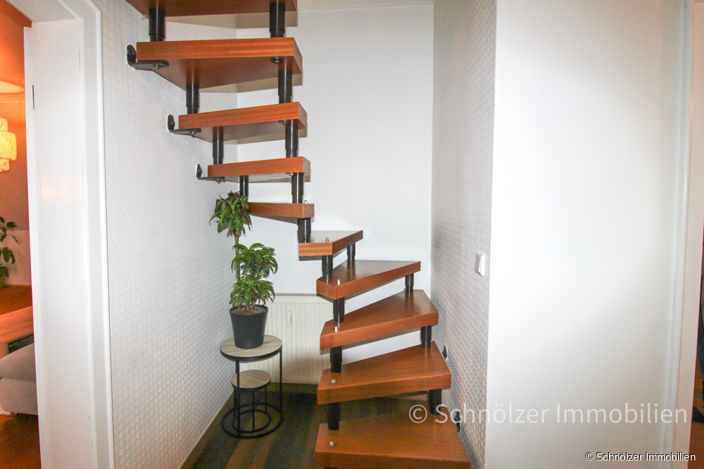 In dieser Wohnung im 2. Obergeschoss wohnen Sie auf 102 m² Wohnfläche. Ergänzt wird die Wohnfläche durch zusätzlich ca. 30 m² wohnlich genutzte Fläche im ausgebautem Dachgeschoss. Die Wohneinheit verfügt über zwei geräumige Schlafzimmer. Das Elternschlafzimmer verwöhnt Sie mit einem schönen Weitblick. Das tageslichtdurchflutete Badezimmer ist komfortabel ausgestattet mit einer Dusche und einer Badewanne. Die helle Küche bietet Ihnen viel Platz. Eine moderne Einbauküche ist bereits vorhanden und kann bei Interesse für eine Ablöse übernommen werden. Direkt neben der Küche befindet sich der großzügige Wohn-/ Essbereich mit direktem Zugang zum großen überdachten Balkon. Eine Wendeltreppe führt Sie in die Dachgeschossebene, wo Ihnen drei weitere Räume und ein zusätzliches WC zur indivuellen Nutzung zur Verfügung stehen.