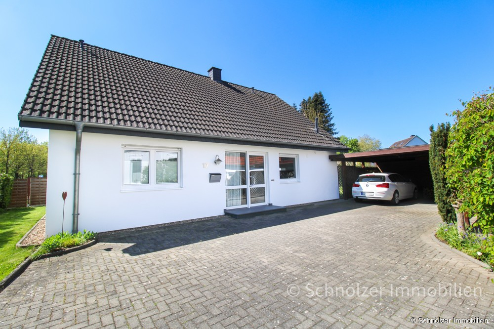 Ein Carport mit Platz für zwei Fahrzeuge und direktem Zugang zum Garten ergänzt das Angebot.