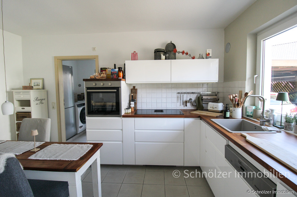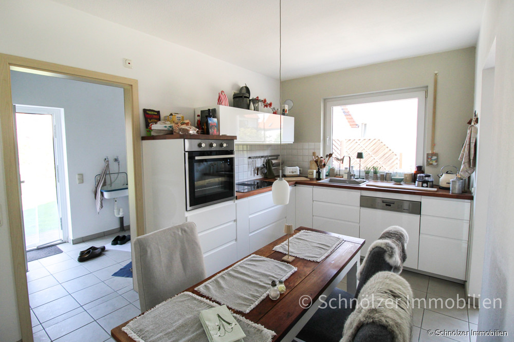Die Küche mit moderner Einbauküche ist separat vom Flur aus zugänglich und wurde 2023 erneuert. Diese ist bereits im Kaufpreis inkludiert. Besonders praktisch: der angrenzende Hauswirtschaftsraum mit direktem Zugang in den Garten.