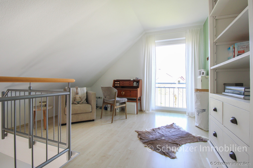 Im Dachgeschoss geht es großzügig weiter: Zwei moderne Schlafzimmer und ein offener Arbeitsbereich auf der Galerie mit herrlichem Blick in den Garten sowie ein großes Bad mit Dusche und Badewanne komplettieren das Raumangebot.