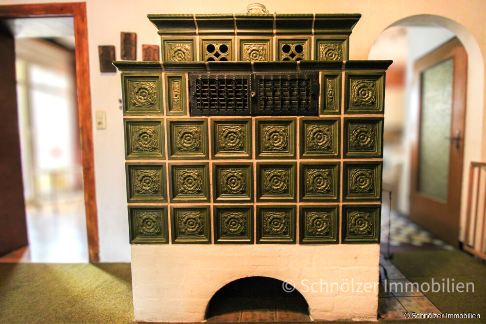Schon beim Betreten von Veranda und Diele offenbart sich der besondere Charme dieses Hauses. Der robuste Terrazzoboden hinter der eindrucksvollen Eingangstür, die originalen Holzdielen und das edle Parkett verleihen den Räumen eine besondere Atmosphäre. Der großzügige Flur wird von einem wohnlichen Kachelofen mit der Lippischen Rose geprägt, der schon bald wieder für behagliche Stunden sorgen könnte.