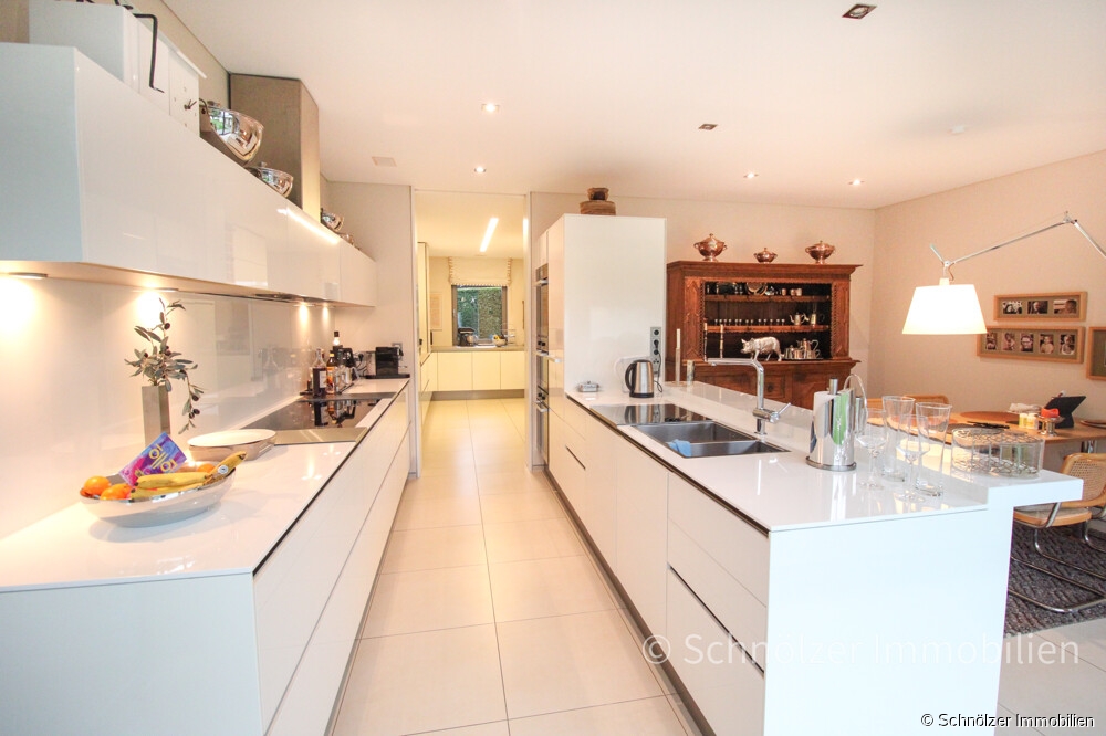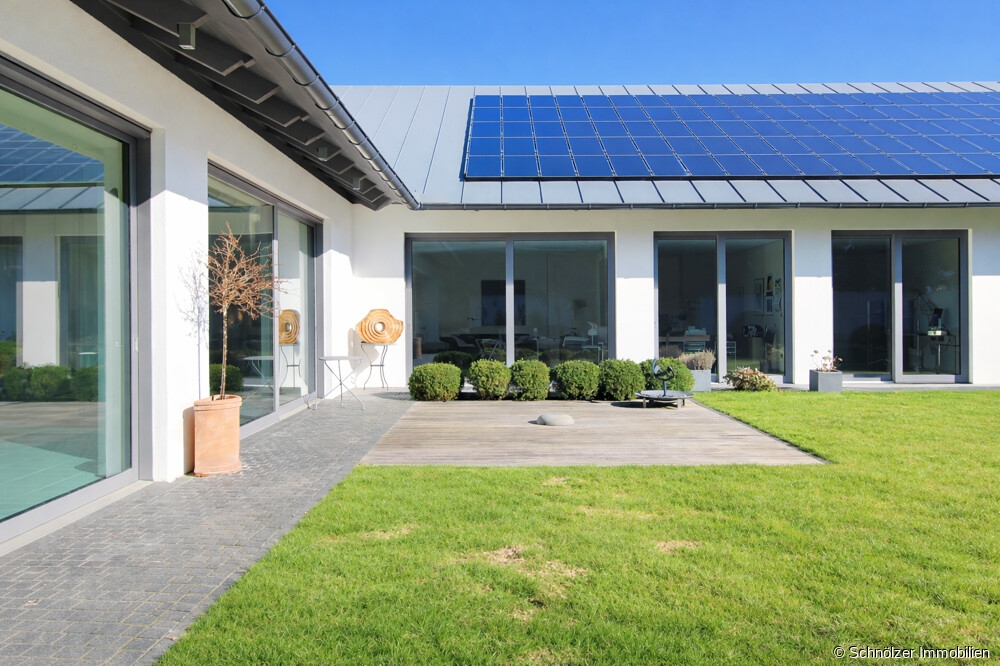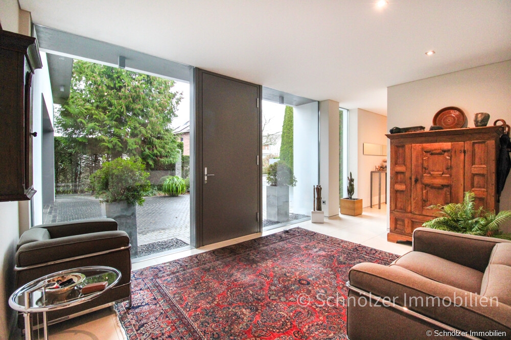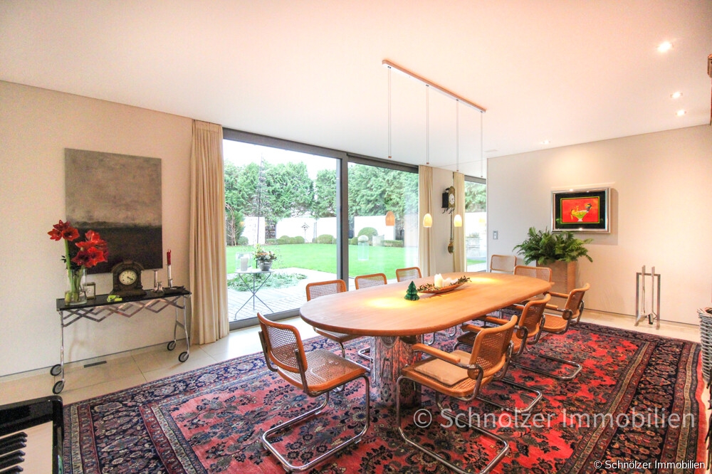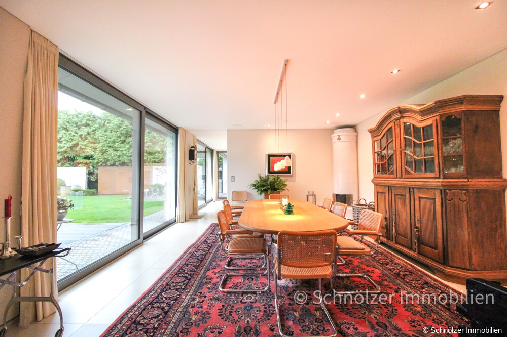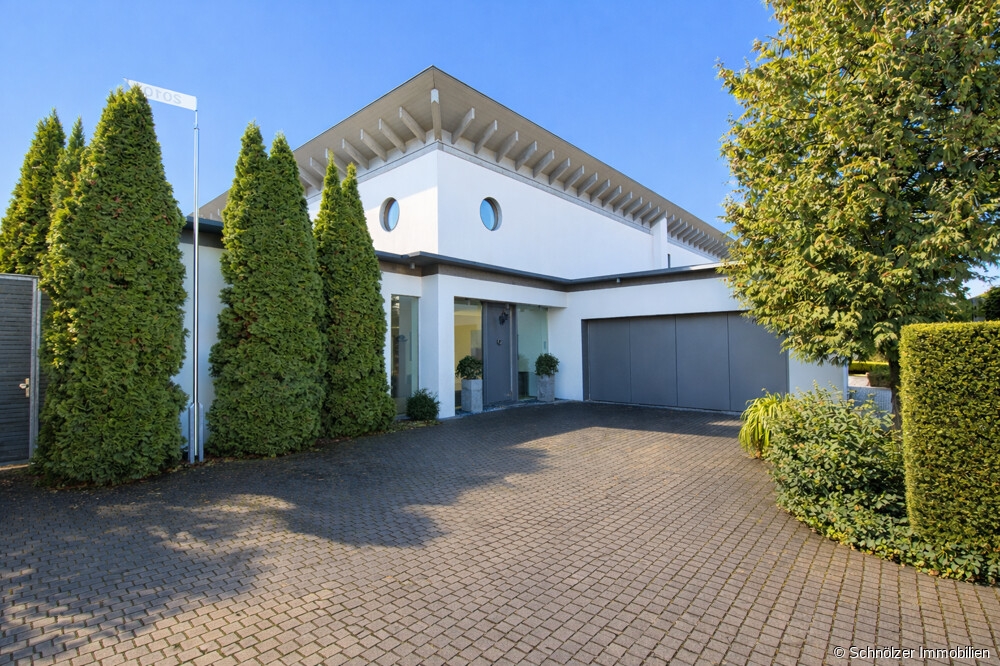 Diese neuwertige und exklusive Villa wurde erst im Jahr 2010 auf einem 1.330 m² großen Grundstück errichtet und vereint auf einer Ebene mit einer Wohnfläche von ca. 300 m² architektonische Präzision, zeitlose Eleganz und kompromisslose Wohnqualität. Vom ersten Moment an zeigt sich: Hier wurde nichts dem Zufall überlassen. Jeder Raum, jeder Blick und jedes Detail folgt einem konsequenten Konzept, das schöneres Wohnen ohne Kompromisse ermöglicht.