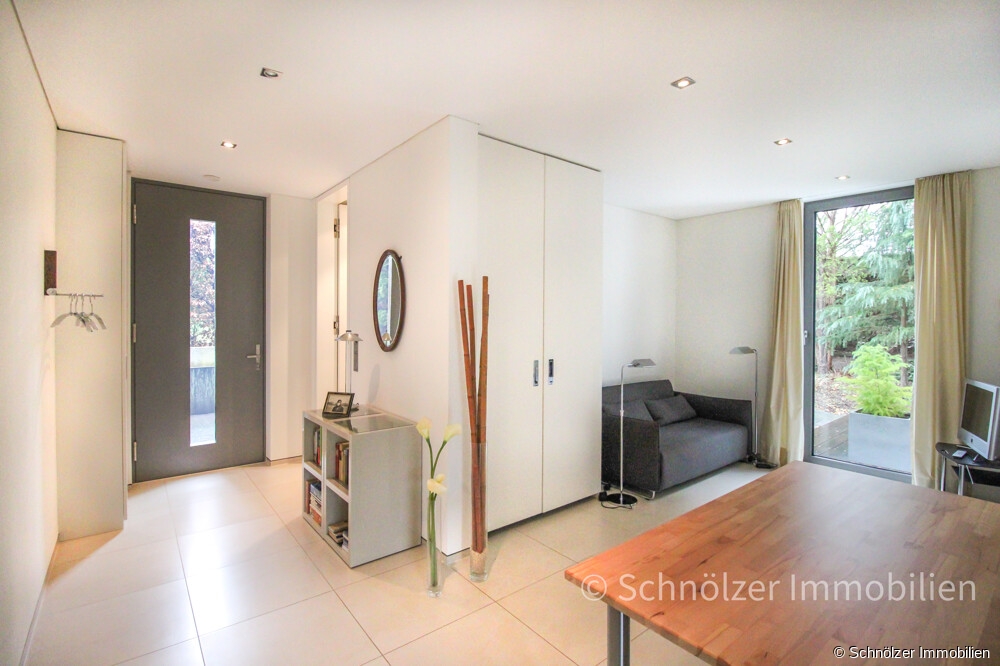 Ein weiteres Highlight ist die separat zugängliche Einliegerwohnung. Sie besitzt einen eigenen Eingang von einer anderen Straßenseite, eine nicht einsehbare Terrasse und lässt sich bei Bedarf offen zum Haupthaus gestalten. Ideal bietet sich diese Einheit auch für eine separate Nutzung als Kinderbereich, Homeoffice oder spätere Nutzung für Pflegepersonal an.
