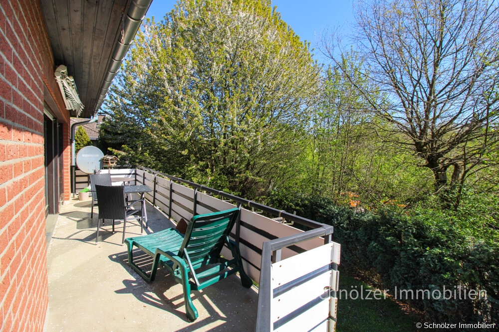 Vom Wohnbereich aus haben Sie direkten Zugang zu einem sehr großzügigen Balkon, der sich über die gesamt Hausbreite erstreckt. Im weiteren Verlauf des Flures erschließen sich auf der rechten Seite des Hauses drei Schlafzimmer, ideal für Familien mit ein bis zwei Kindern oder auch für Paare, die ein zusätzliches Arbeitszimmer benötigen. Das große Hauptschlafzimmer verfügt ebenfalls über einen direkten Zugang zum Balkon. Ein Vollbad mit Badewanne sowie ein separates Gäste-WC auf dieser Ebene runden das Raumangebot ab.